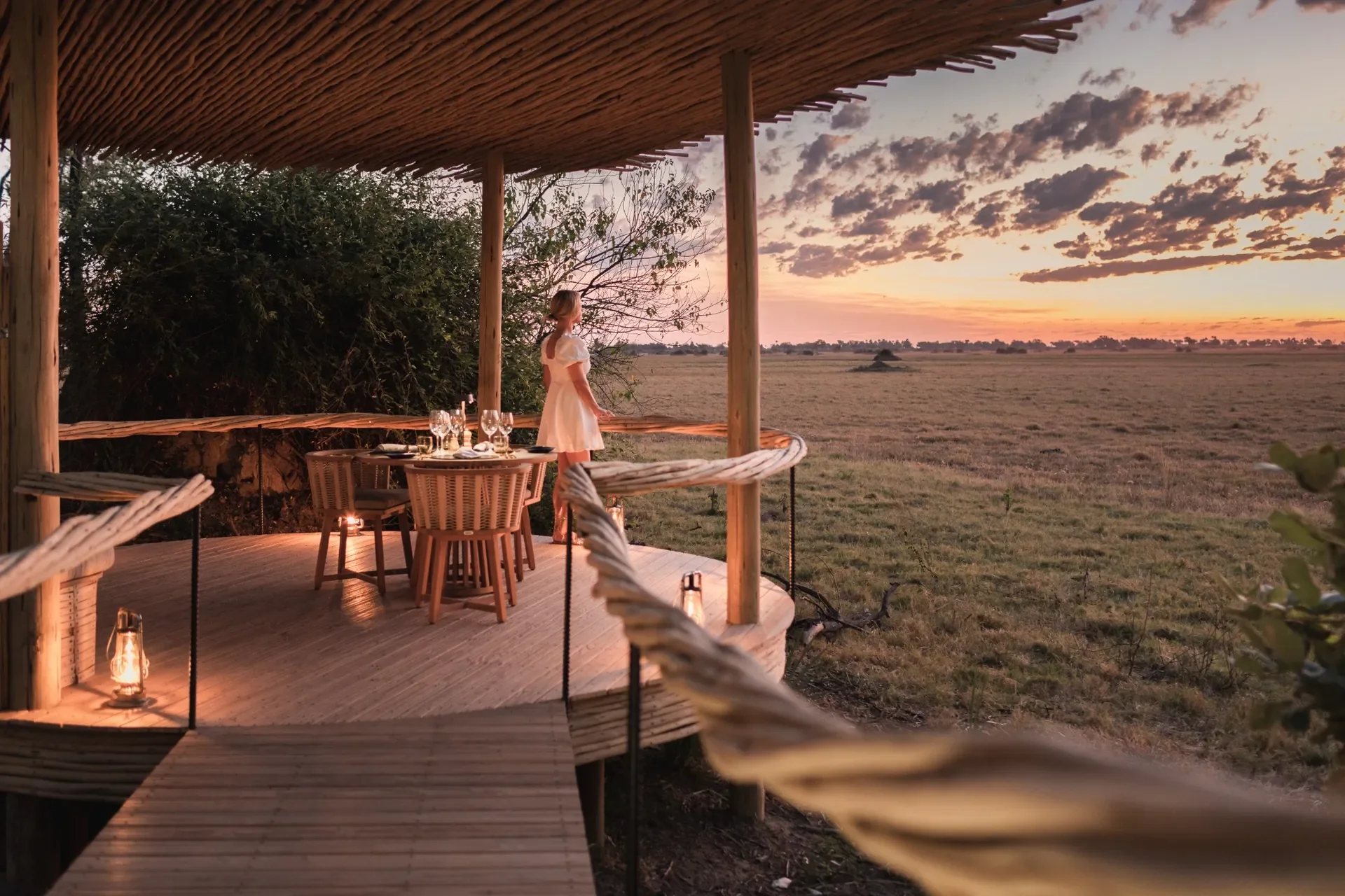 Alfresco dining turns the bush into a private restaurant with the sky as your ceiling and wildlife for company. In the Serengeti, dinners with Serengeti Under Canvas and lunches from Olakira Migration Camp set simple linen, glowing lanterns and attentive service among sweeping plains. At Klein’s Camp on the Kuka Hills, sunrise breakfasts overlook valleys where giraffe and zebra move through morning light. In Botswana, a boat ride from Vumbura Plains or an island setting near Jao sets the scene for relaxed lunches between activities.