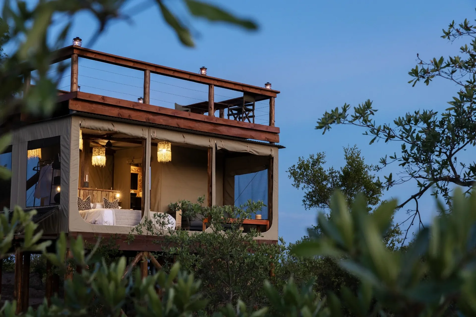 Treehouse sleepouts deliver privacy, safety and a powerful sense of place. At Lion Sands, Chalkley, Kingston and Tinyeleti place you high above riverine bush with lanterns, a plush bed and a discreet radio for peace of mind. Marataba’s Thabametsi sits beneath Waterberg peaks with mountain views and a warm turn down ready after dinner. In Kenya, Serian The Nest offers an elevated hideaway where dusk settles into a chorus of night sounds, while Nay Palad Birds Nest brings a circular, multi-level design with wraparound views of Laikipia.