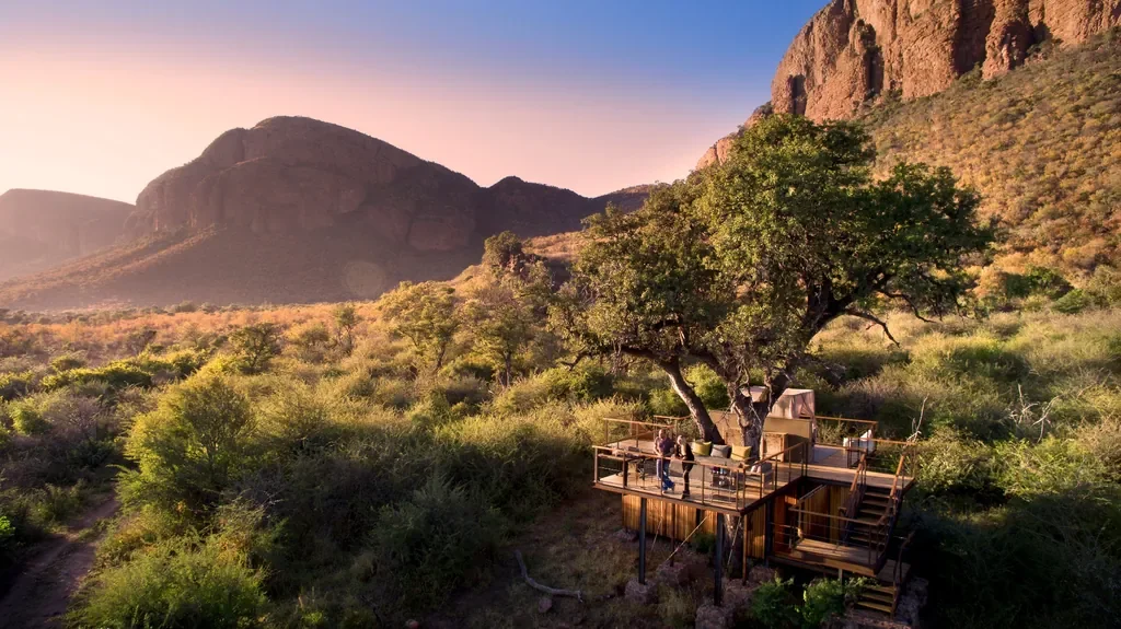 Private off-grid treehouse stay, panoramic views of the Waterberg Mountains, gourmet picnic and sundowners at sunset, complete seclusion in the heart of the bush, fall asleep under the stars, wake to birdsong and morning light, solar-powered luxury, exclusive use, fully stocked bar and gourmet snacks, open-air sleepout adventure, immersive wilderness experience, ideal for couples or families (6+)