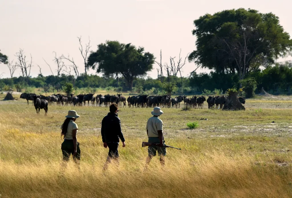 Morning, afternoon and night game drives track predators and plains game, with sensitive off-road sightings where appropriate. Guided walking safaris deepen bushcraft; when water levels allow, glide by mokoro through reed-lined channels. Seasonal birding excels; children enjoy Ngwana Club activities. Rebalance at the spa, yoga deck, gym and 20-metre pool, or book wellness treatments in a tranquil sala. Scenic helicopter flights showcase the Delta’s mosaics; star beds invite sleep-outs at the villa and family suite. Flexible pacing suits photographers; campfire stargazing follows after dinner. Alfresco meals, private deck dining and sundowners keep everything unhurried.