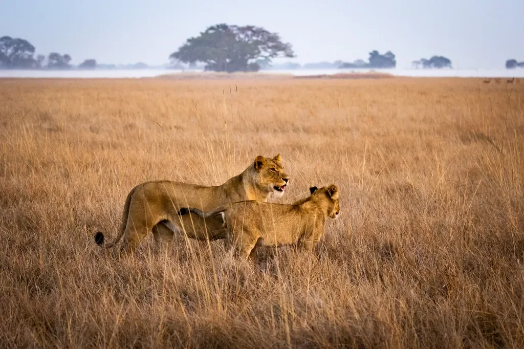 The Busanga Plains sit in northern Kafue National Park, a remote mosaic of seasonally flooded grasslands laced with channels and tree islands. As waters recede in the dry season, roughly 600 km² of open savannah attracts puku, red lechwe, roan and sable, with powerful lion dynamics on display and excellent birding with notable waterbirds. Because this is a national park (not a private concession), activities follow park rules: daytime game drives, permitted night drives using ethical spotlights, and early-season boating when water remains high. The area re-floods with the first rains, closing camps.