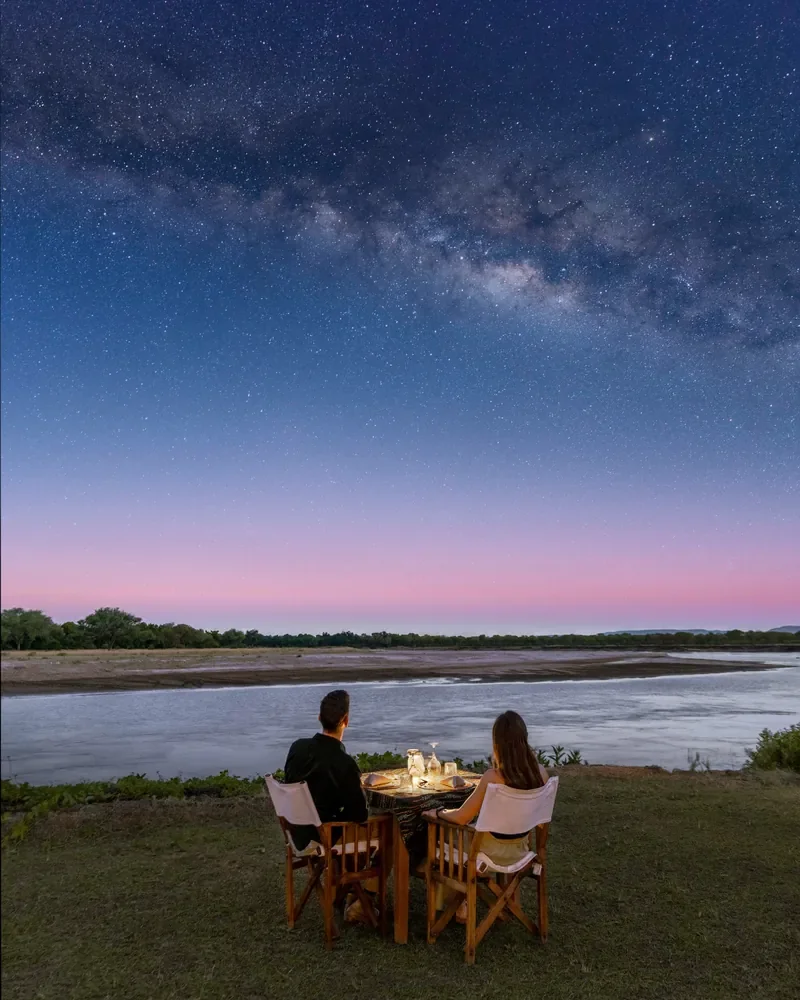 Day and night game drives with award-winning guides reveal South Luangwa’s famed predator action and large elephant herds. Guided walking safaris reconnect you with tracks, birds and botany. When levels allow, add seasonal boating on the Luangwa and time in wildlife hides; photographers appreciate unhurried sightings. Back in camp, book in-tent spa treatments, cool off in your private pool, and enjoy private deck dining, bush breakfasts and fireside stargazing. Wi-Fi in rooms, daily laundry and mains power keep things easy. Try the optional Sleepout under a mosquito net for a star-lit night.