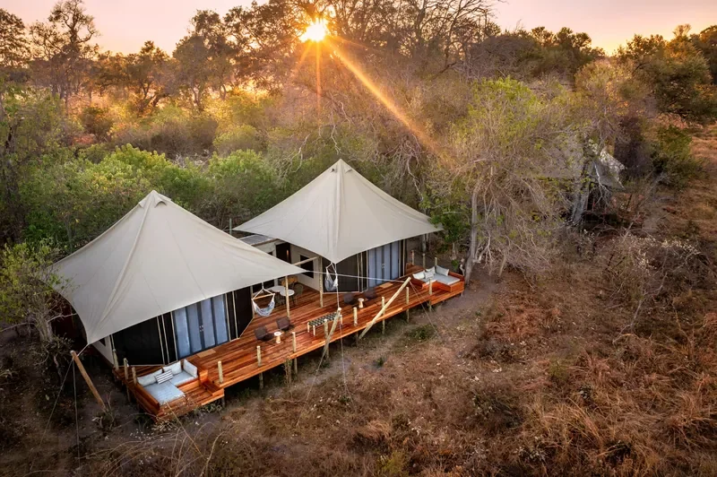 Set along the Khwai River in the community-run Khwai Concession, Khwai Lediba Expeditions Camp offers front-row wildlife viewing year-round with flexibility beyond nearby Moremi. Six luxury tented suites plus a family and honeymoon suite (max 16 guests) face the river. A pool, open-kitchen dining, bar and sunken lounge anchor relaxed camp life. Enjoy day and night drives, guided walks and seasonal mokoro outings, with frequent elephant, big cats and wild dog sightings right from camp.