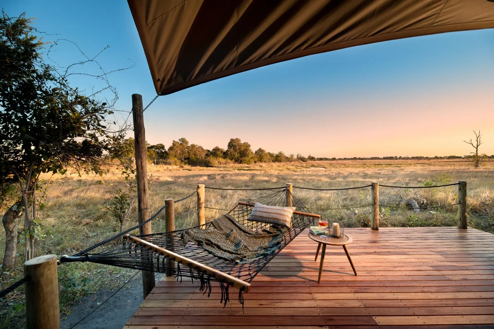 Morning, afternoon and night game drives search for lion, leopard, wild dog and elephant along the Khwai River. Guided walking safaris with armed guides highlight tracks, birdlife and botany. When water levels allow, glide by mokoro; boating and catch-and-release fishing may be possible nearby. A seasonal 20-minute scenic helicopter flip is included on 3-night stays. In camp, enjoy the pool, sunken lounge, and open-kitchen dining, boma evenings, private deck meals and flexible picnics. Cultural visits to Khwai village preschool can be arranged, supporting community projects. Stargazing and sundowners close each day.