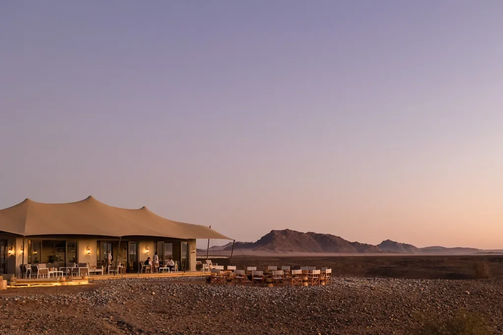 Set within the 27,000-hectare Kulala Wilderness Reserve bordering Sossusvlei, Kulala Desert Lodge is a welcoming base for couples and families. Twenty-one canvas and thatch tents, including two family units, offer indoor showers, Wi-Fi and verandas that double as star beds. Exclusive access through the private Kulala gate puts sunrise dunes and Dead Vlei within easy reach. Nature drives, guided walks and night outings reveal desert adapted wildlife and vast, sculpted landscapes.