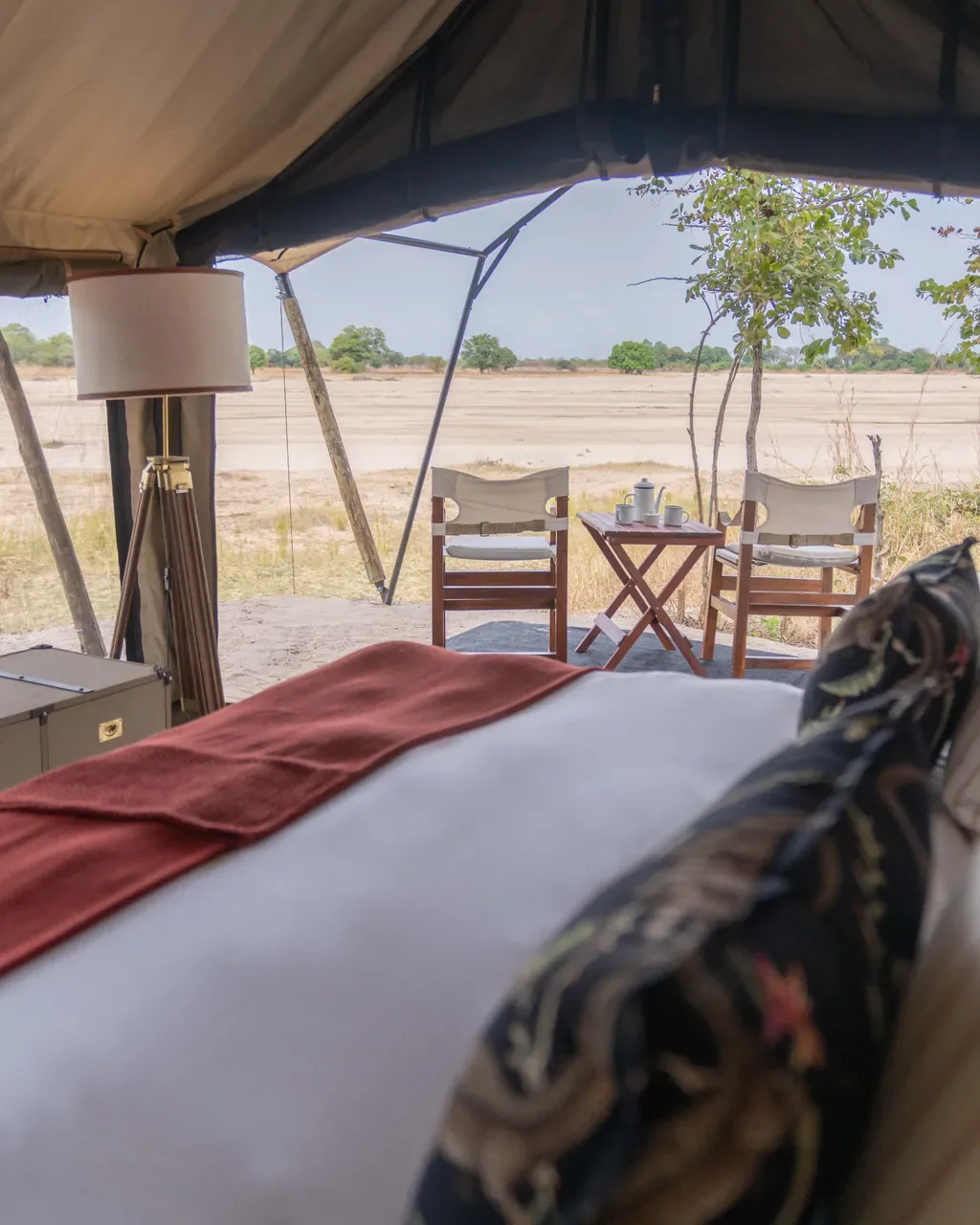 Explore by day and at night on expertly guided game drives; this is prime walking-safari country, with tracking-focused walks led by expert guides. Spend quiet time in the wildlife hide beside the permanent oxbow lagoon to watch hippo and visiting game. Venture upriver in search of roan, eland and hartebeest, and track lions and wild dogs on foot. The optional Sleepout under a mosquito net adds adventure. Back in camp, enjoy the lounge, library, bar and campfire, private deck dining and bush breakfasts; Wi-Fi in rooms, daily laundry and stargazing keep things relaxed.