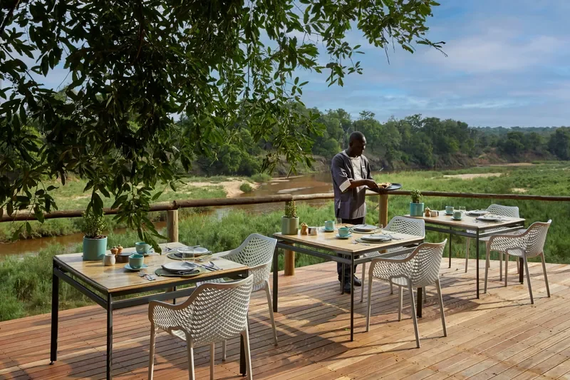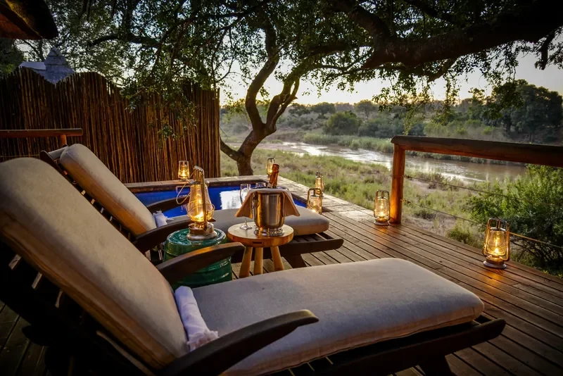 Morning and afternoon game drives with highly qualified guides trace riverine forest and open clearings for Big Five and prolific birdlife. Between drives, book indulgent spa treatments, relax in the bar lounge and library, or cool off in your suite’s private plunge pool above the Sabie. Evenings bring boma or bush dinners, private deck dining, sundowner stops and easy stargazing. Photographers can use the Creative Lab to turn images into keepsakes, while the optional Tinyeleti Treehouse offers a magical sleepout. Complimentary Wi-Fi, in-suite charging, and picnic breakfasts or flexible picnic lunches keep things effortless.