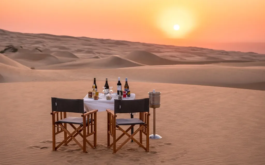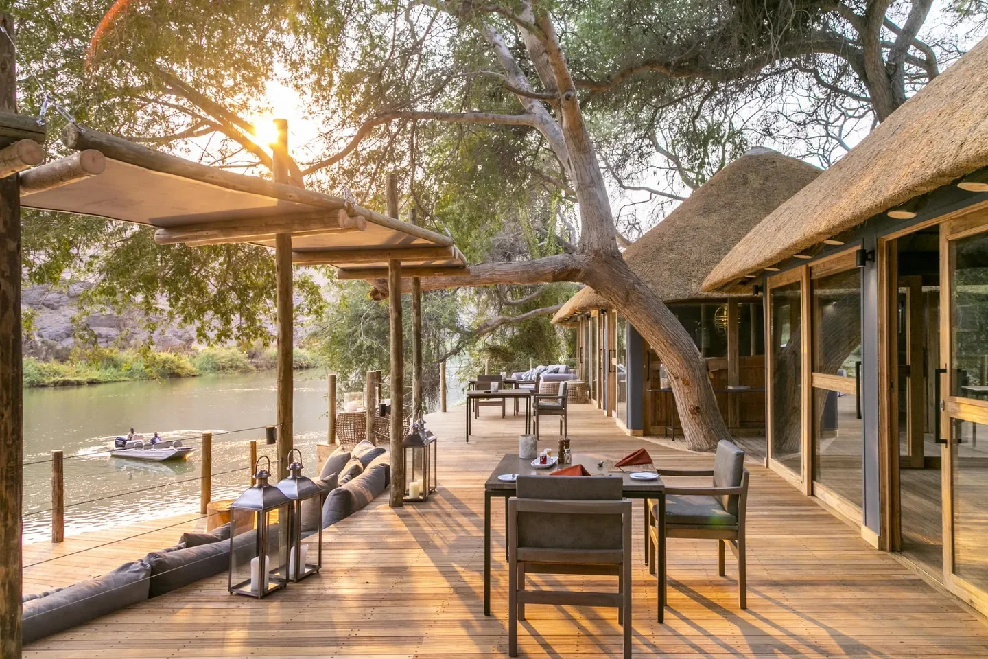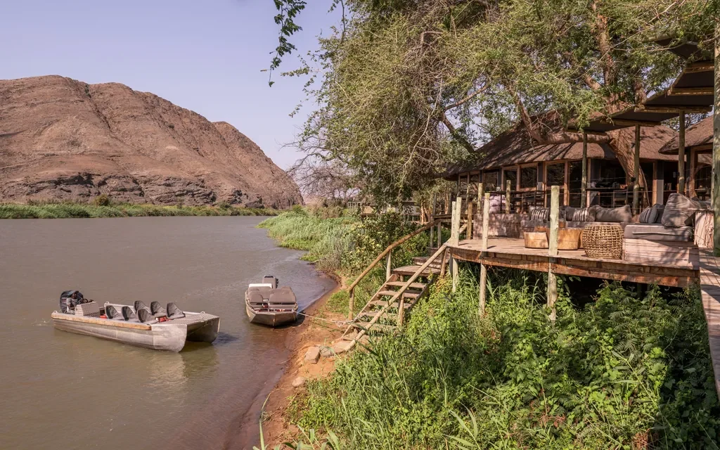 Nature drives trace gravel plains and riverbanks for desert-adapted elephant, giraffe, oryx and Hartmann’s mountain zebra. Guided walks explore geology and tracks; dune-sensitive quad-bike outings add fun on designated routes. When water levels allow, boat the Kunene for birding, crocs and river perspectives; catch-and-release fishing is possible on request. Visit (respectfully and only when appropriate) a working Himba community for deep cultural context. Back at camp, swim in the pool, book in-tent massages, stargaze with a laser pointer, and enjoy private deck dinners overlooking the river and sandscapes, and time on the sunken viewing deck.