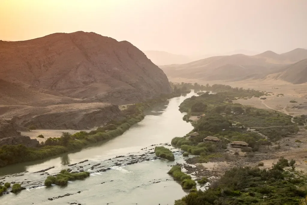 Hidden on the banks of the Kunene River in Namibia’s far-north Kaokoveld, Wilderness Serra Cafema sits within the Himba-owned Marienfluss Conservancy, a vast, private wilderness. Eight thatch-topped canvas suites (one family) are set on elevated decks with indoor/outdoor showers, shaded salas and in-tent Wi-Fi. 100% solar power and thoughtful design keep things cool and quiet. Days reveal desert-adapted wildlife, boat the Kunene when levels allow, and venture by quad or on foot across dunes and valleys.