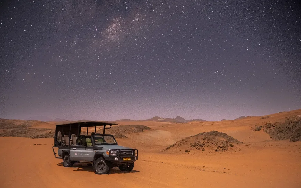 Serra Cafema lies in Namibia’s far-north Kunene, on the Himba-owned Marienfluss Conservancy: 300,000 hectares of river, dunes and otherworldly geology along the Angola border. Fog off the Atlantic and scant rainfall shape a stark desert where ephemeral rivers sustain desert-adapted elephant, giraffe, oryx and Hartmann’s mountain zebra; Nile crocodiles patrol the Kunene. Private-area guidelines allow guided walks, nature drives and dune-sensitive quad routes; boating is seasonal, governed by water levels. Access is fly-in to the camp airstrip and a scenic 1–1.5 hour road transfer through Hartmann’s Valley to camp. Skies are exceptionally dark for stargazing.