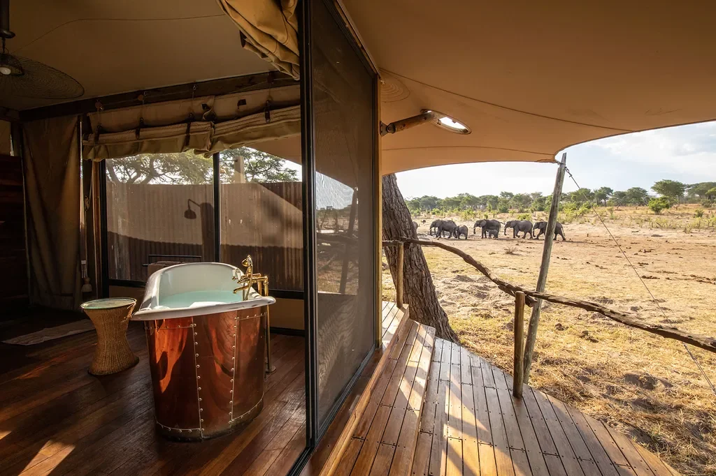 Set on a private concession in Hwange National Park, Somalisa Acacia is a family-friendly camp shaded by acacias. Two luxury family tents with interleading rooms and two luxury sail tents feature ensuite bathrooms, copper bathtubs, private decks and in-room charging. A lounge, dining room, boma, swimming pool and an elephant drinking pool anchor relaxed camp life; facilities include a bar and fire circle. Child-specialist guides, expert game drives and guided walks showcase Zimbabwe’s wildlife-rich reserve.