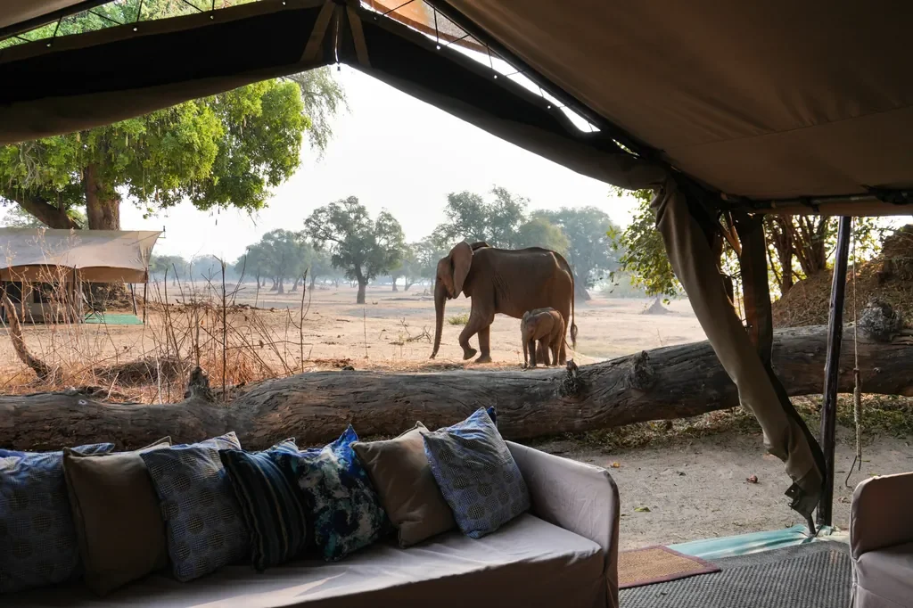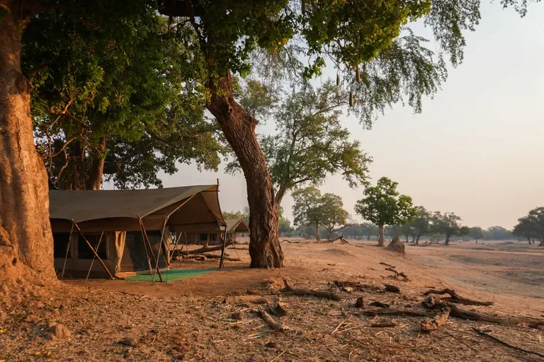 Set on the open floodplains of Mana Pools National Park along the Zambezi River, Zambezi Expeditions is a semi-mobile tented camp focused on immersive, low-footprint safaris. Six Meru-style tents face the river with ensuite bathrooms. Days revolve around canoeing, guided walks and unhurried game drives; catch-and-release fishing and seasonal birding add variety. Operating April to November, the camp delivers close-up wildlife from camp and along the river’s edge, with starlit evenings around the campfire too.