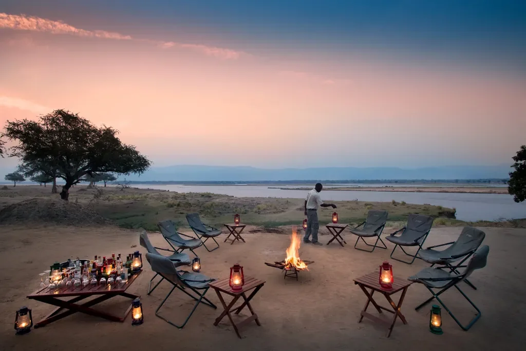 Morning and afternoon game drives trace the Zambezi floodplains for elephant, buffalo, big cats and plains game. Guided walking safaris with armed guides deepen bushcraft; canoeing excursions follow quiet channels, and catch-and-release shore fishing targets tigerfish when in season. Seasonal birding excels. Between outings, cool off in the splash pool, enjoy the fire circle and full bar, and embrace a low-footprint safari rhythm. Picnic breakfasts and lunches, alfresco dinners, sundowners and stargazing keep things unhurried. Battery charging is available in the main area; children 12+ are welcome, with walking and canoeing for ages 16+.
