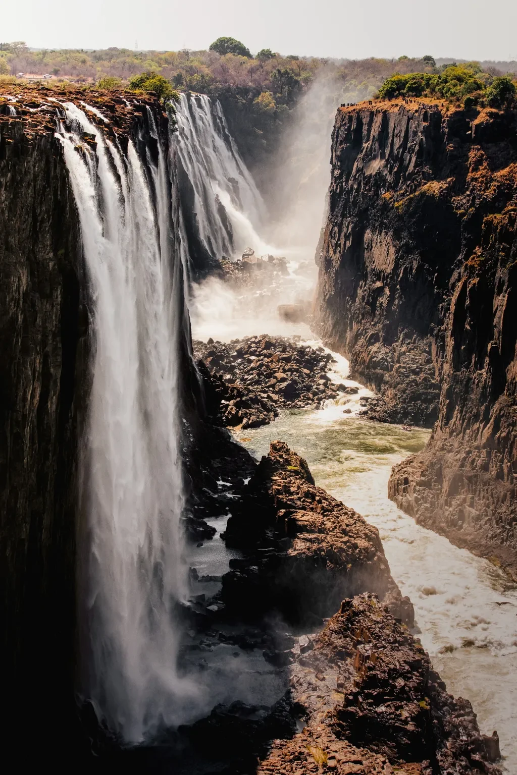 On the Zambia–Zimbabwe border, Victoria Falls thunders where the Zambezi drops into a basalt gorge. Upstream, quiet channels host boat cruises and birdlife; downstream, mist and rainbows rise from the chasm. Combine the Falls with Mosi-oa-Tunya National Park for gentle wildlife, river time and effortless access on both sides.